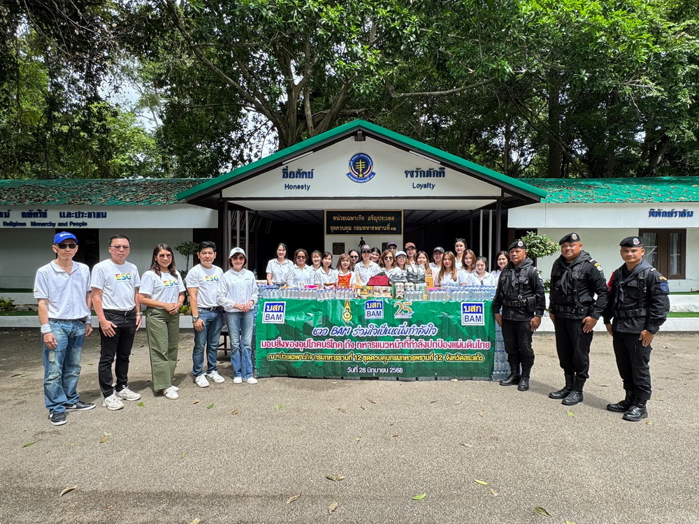 BAM ขอร่วมเป็นอีกหนึ่งกำลังใจและมอบสิ่งของให้กับทหารที่ปฏิบัติหน้าที่ตามแนวชายแดน ไทย-กัมพูชา โดยเฉพาะน้ำดื่ม เนื่องจากในพื้นที่ดังกล่าวมีอากาศที่ร้อนจัด ซึ่งทางหน่วยเฉพาะกิจจะได้นำไปกระจายต่อให้กับหน่วยลาดตระเวนป้องกันแนวพื้นที่ชายแดนตลอด 24 ชั่วโมงต่อไป