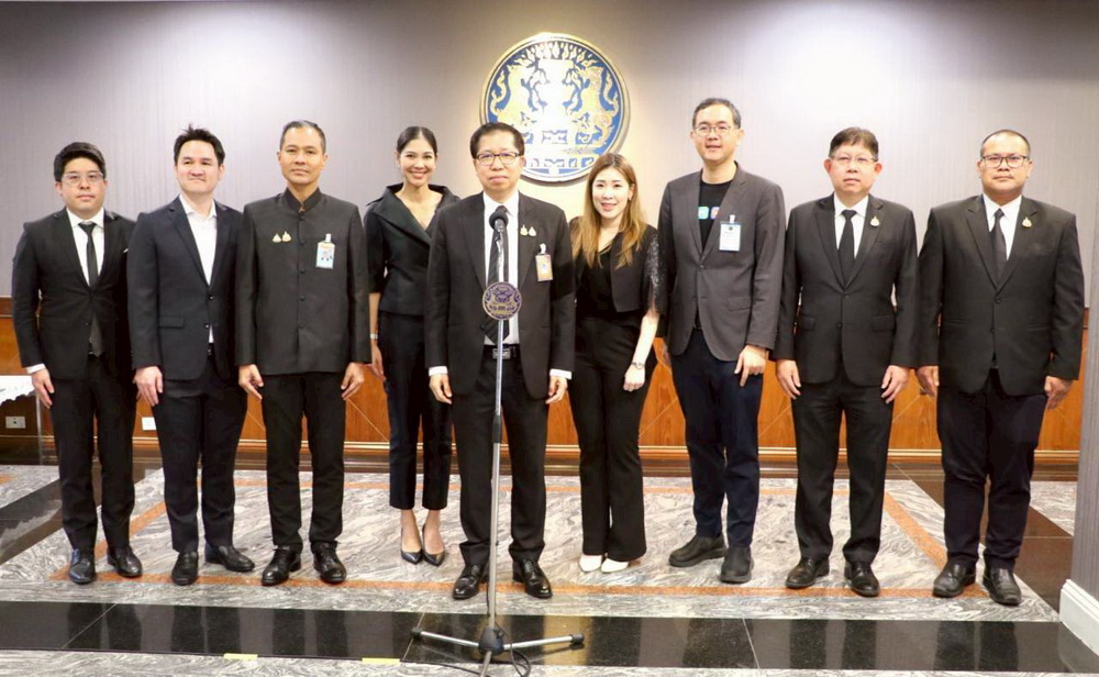 นายสันติ ปิยะทัต รัฐมนตรีประจำสำนักนายกรัฐมนตรี พร้อมด้วย นายรณรงค์ พูลพิพัฒน์ เลขาธิการคณะกรรมการคุ้มครองผู้บริโภค (สคบ.) และ 5 บริษัทแพลตฟอร์มออนไลน์ชั้นนำ