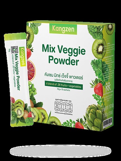 บริษัท คังเซน-เคนโก อินเตอร์เนชั่นแนล จำกัด ขอแนะนำผลิตภัณฑ์ใหม่ล่าสุด Kangzen Mix Veggie Powder ผลิตภัณฑ์เสริมอาหาร คังเซน มิกซ์ เว็จจี้ พาวเดอร์ รวมส่วนผสมจากผักผลไม้ 26 ชนิด
